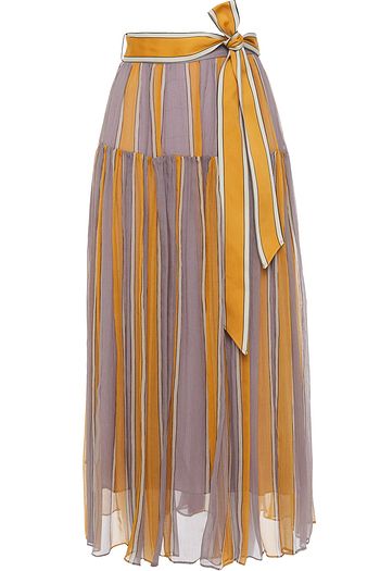 Sophie striped ribbed cotton-blend midi skirt