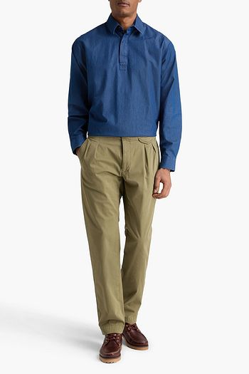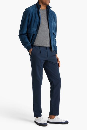 Pleated cotton-blend twill pants
