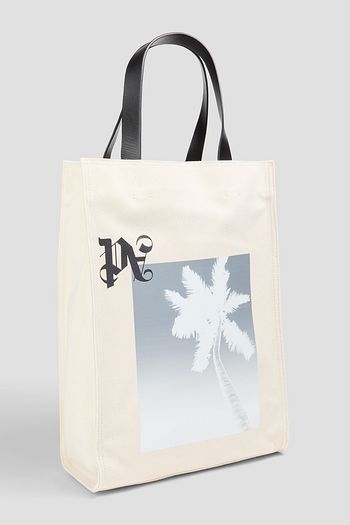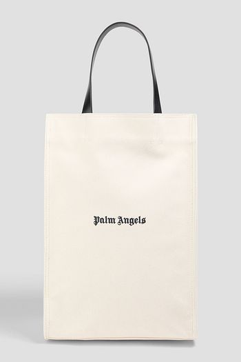 Leather-trimmed printed canvas tote