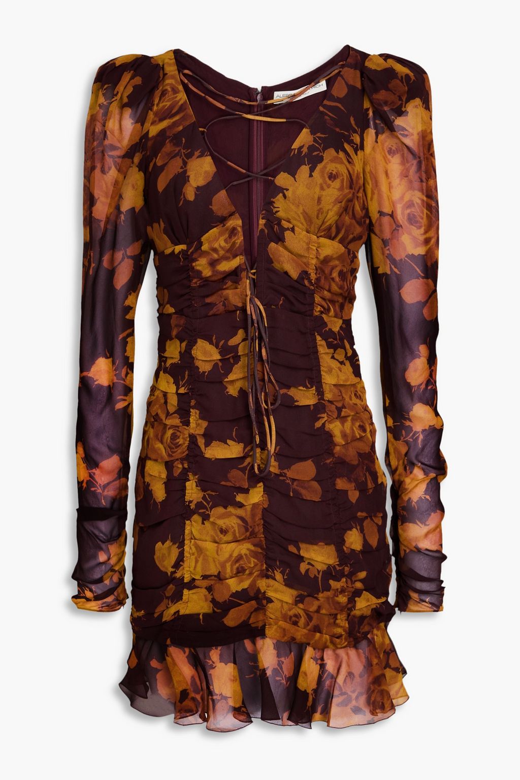 ALESSANDRA RICH Ruched floral-print silk-chiffon mini dress