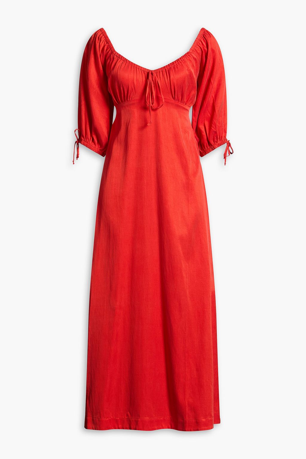 CASA RAKI Frida bow-detailed washed cupro midi dress