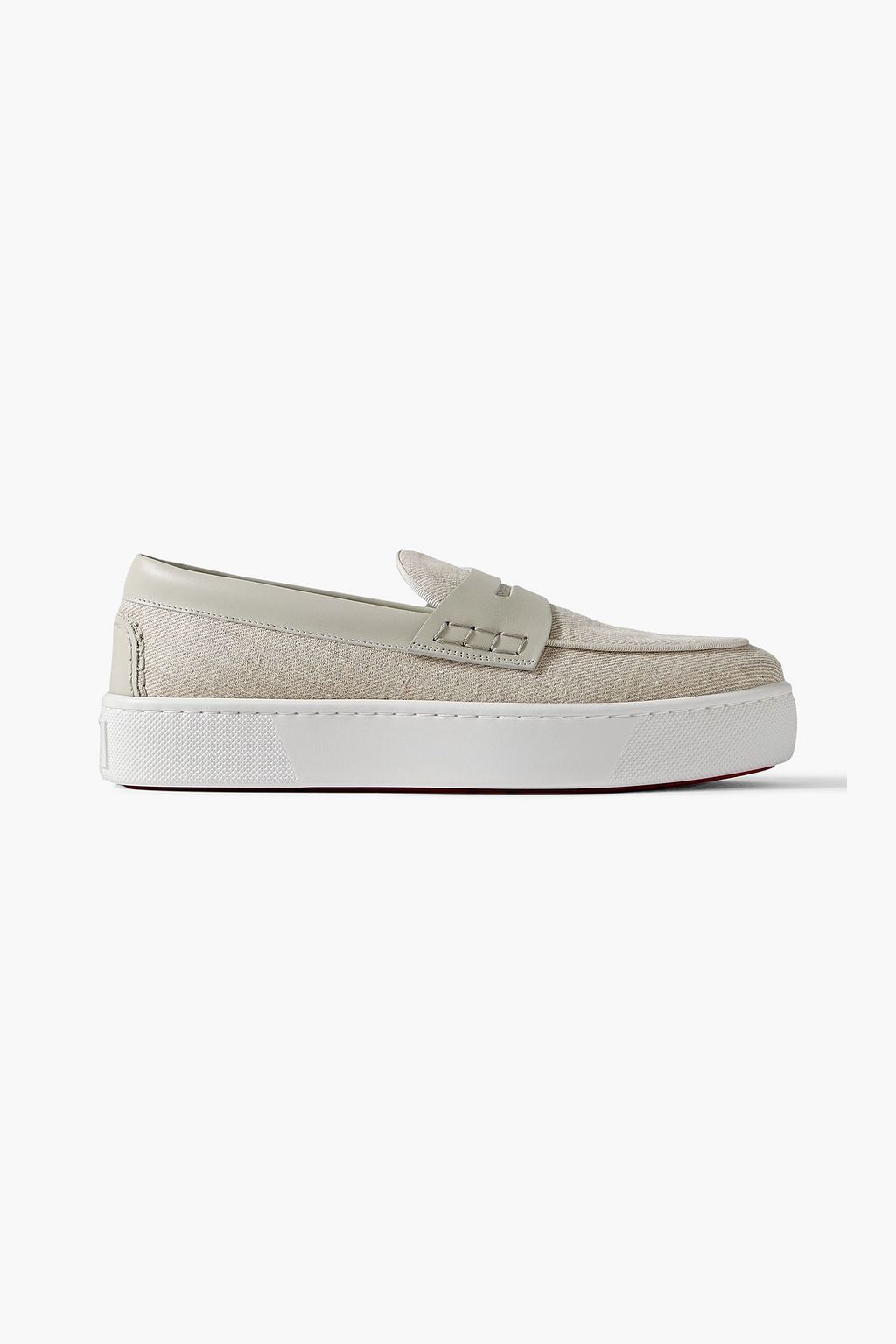CHRISTIAN LOUBOUTIN Paqueboat leather-trimmed linen-canvas penny loafers