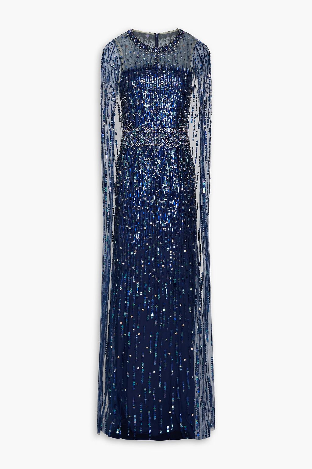 JENNY PACKHAM Cape-effect embellished tulle gown
