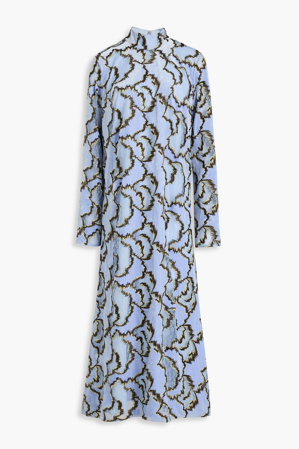 SIMKHAI Embroidered lace-paneled velvet midi dress