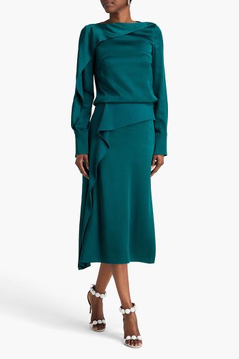 Fringed fil coupé cotton-blend jacquard midi pencil skirt
