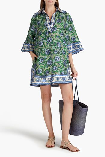 Asymmetric dégradé linen and silk-blend gauze maxi dress