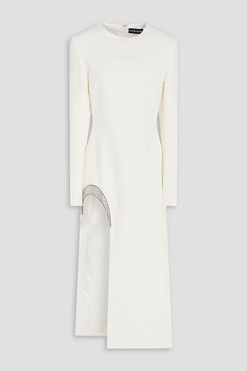 Cold-shoulder asymmetric cotton halterneck maxi dress