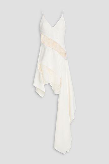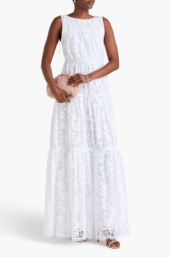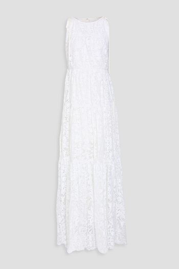 Macramé lace-paneled cotton-poplin maxi shirt dress
