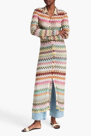 Crochet-knit cotton-blend cardigan
