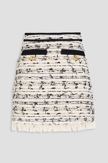 Frayed sequin-embellished bouclé-tweed mini skirt