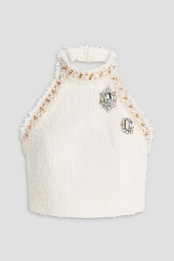 Cropped embellished tweed top