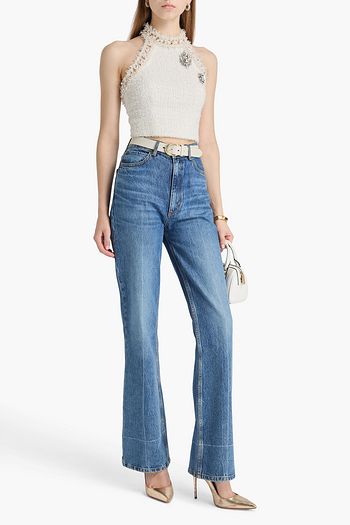 Embellished frayed tweed halterneck top