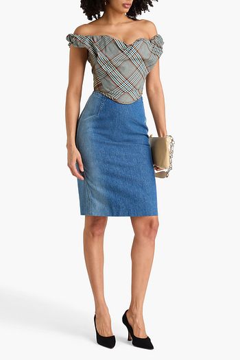 Cropped checked tweed bustier top