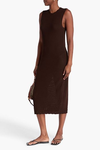 Striped French cotton terry-paneled cotton-poplin midi dress