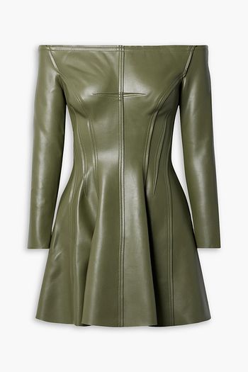 Grace off-the-shoulder vegan leather mini dress