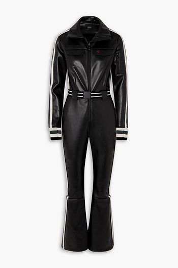 Crystal merino wool-trimmed faux leather ski suit