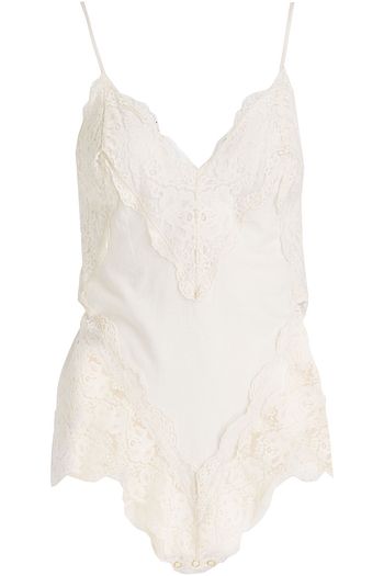 Skipper broderie anglaise-trimmed pintucked cotton-poplin bustier top