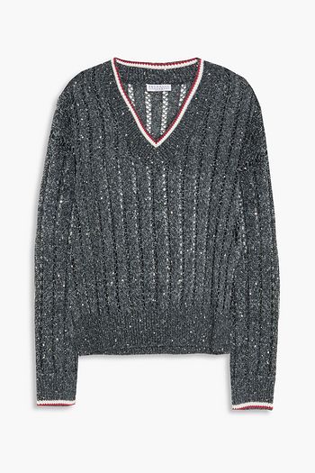 Sequin-embellished wool, cashmere and silk-blend sweater