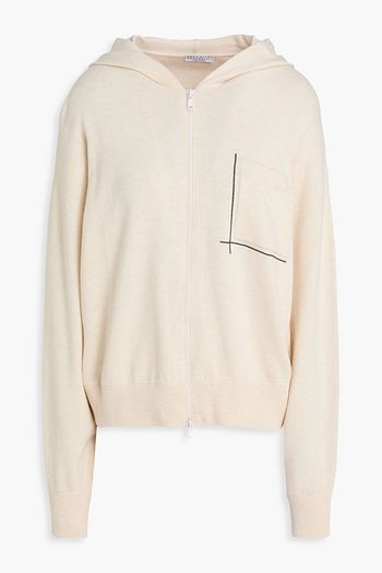 Bead-embellished organza-paneled ribbed cashmere sweater