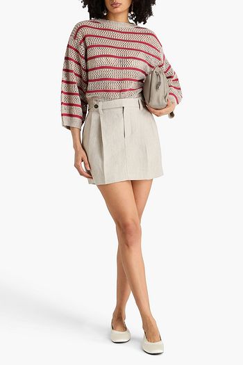 Bead-embellished striped wool, cashmere and silk-blend turtleneck sweater