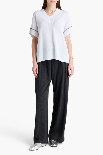 Bead-embellished ribbed cashmere sweater