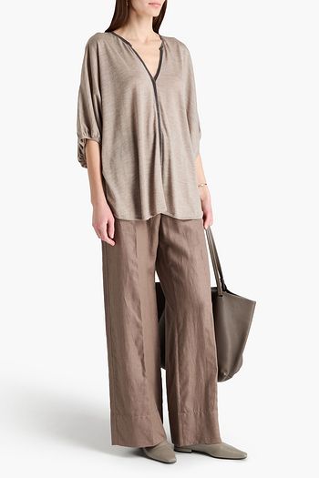 Embellished linen and silk-blend sweater