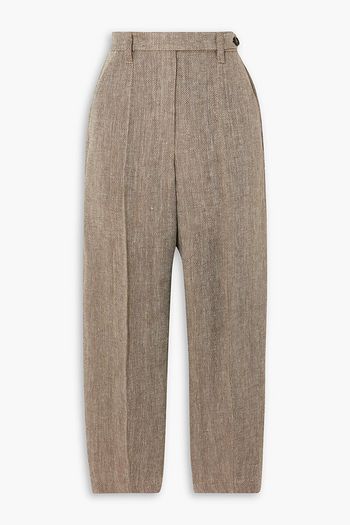 Double-breasted bead-embellished pinstriped cotton-blend blazer