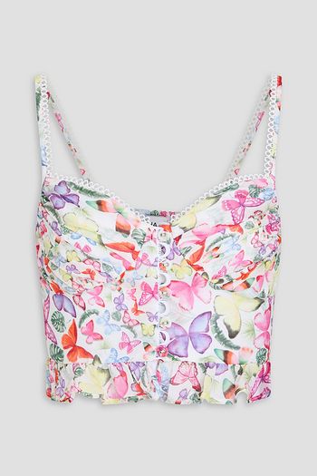 Liro cropped printed cotton-blend voile top