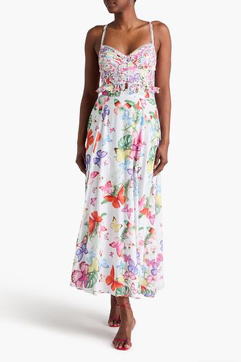 Peisy cropped floral-print cotton-blend voile bustier top