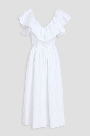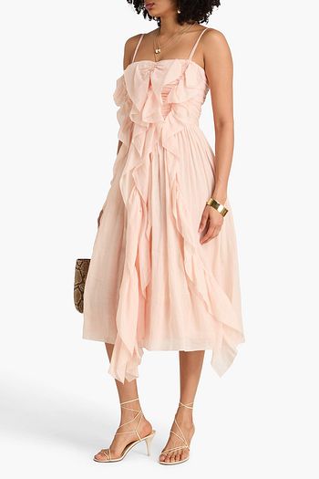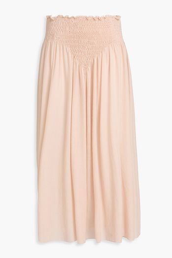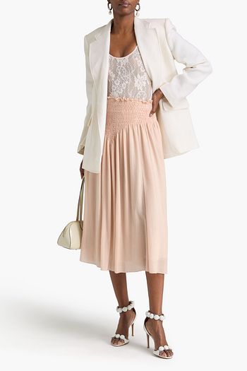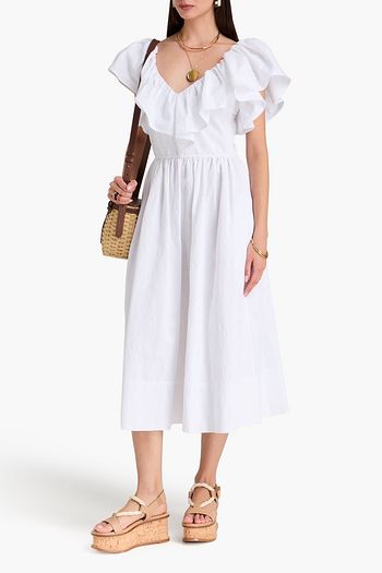 Gauze-paneled ribbed linen and silk-blend maxi dress