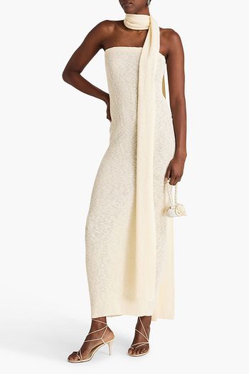 Strapless linen and cotton-blend maxi dress
