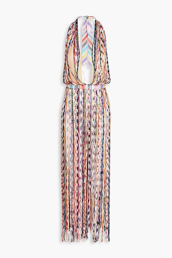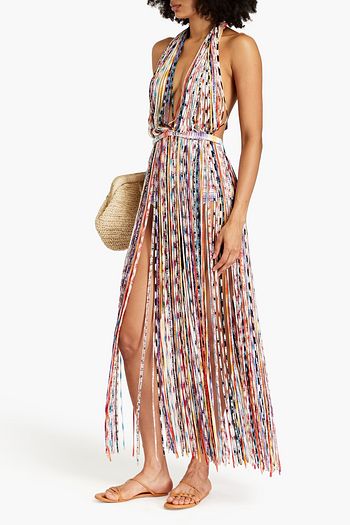 Striped fringed crochet-knit coverup