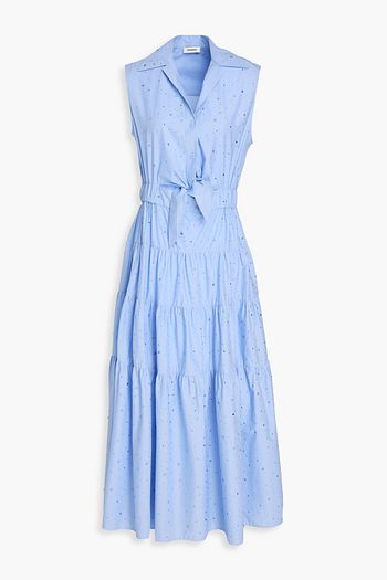 Cutout broderie anglaise linen-blend midi dress