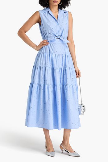 Tiered crystal-embellished Lyocell-blend midi dress