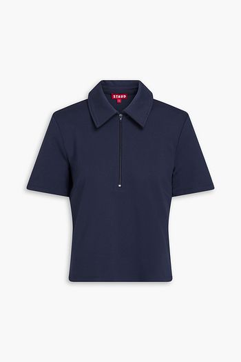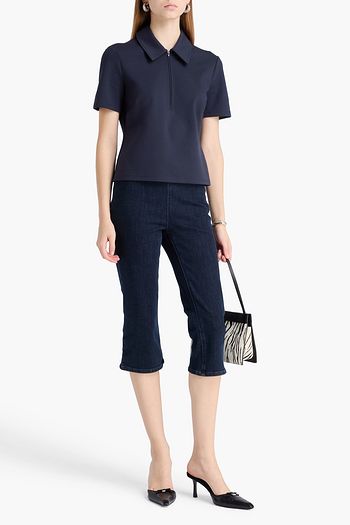 Kristen embellished feather-trimmed ribbed-knit bandeau top