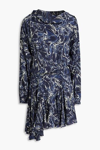 Pleated floral-print crepe de chine mini dress