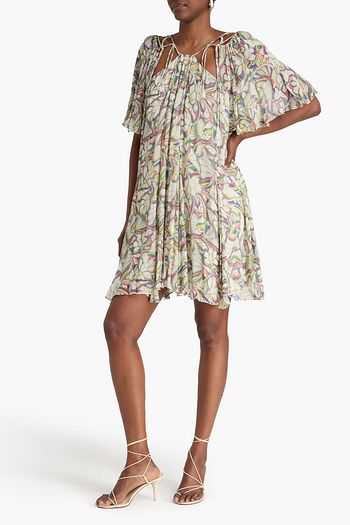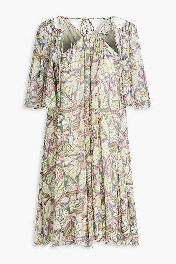 Cora pleated printed cotton-blend mini dress