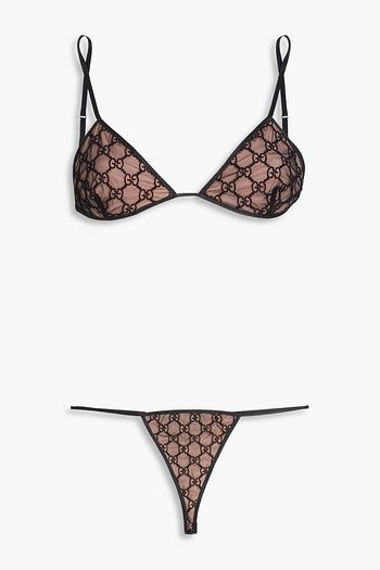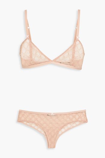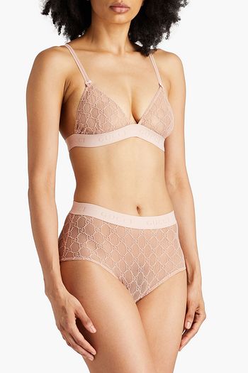 Lace-trimmed flocked stretch-mesh soft-cup triangle bra