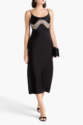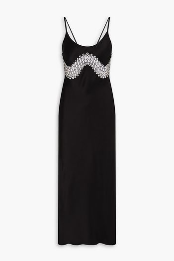 Embellished pussy-bow polka-dot silk-chiffon maxi dress