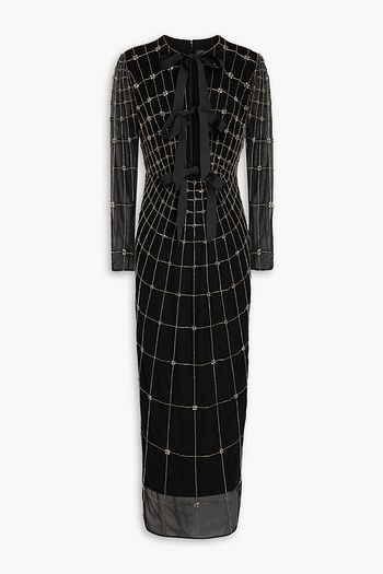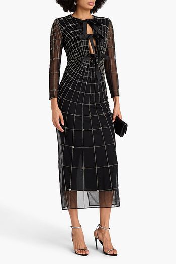 Astra feather-trimmed crystal-embellished cloqué midi dress
