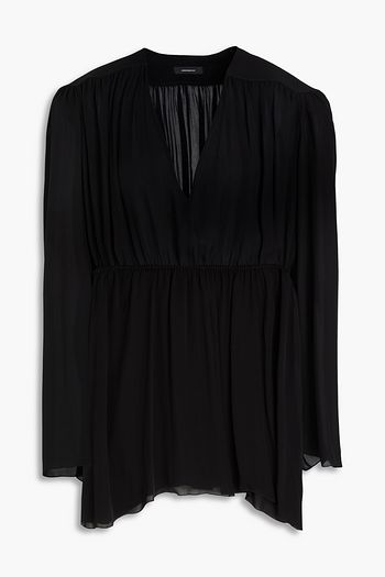 Larya cold-shoulder ruffled crepe de chine mini dress