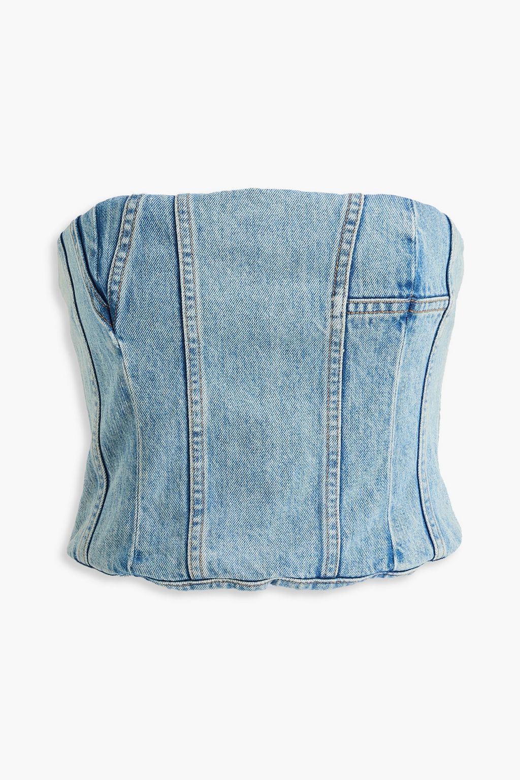 AMIRI Cropped strapless faded denim bustier top