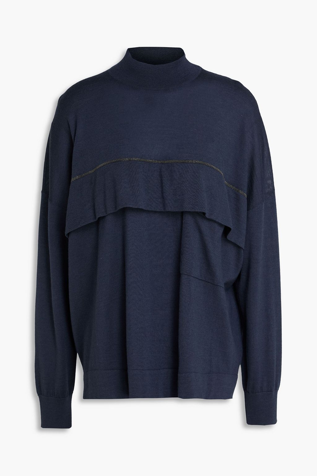 BRUNELLO CUCINELLI Bead-embellished cashmere and silk-blend turtleneck sweater
