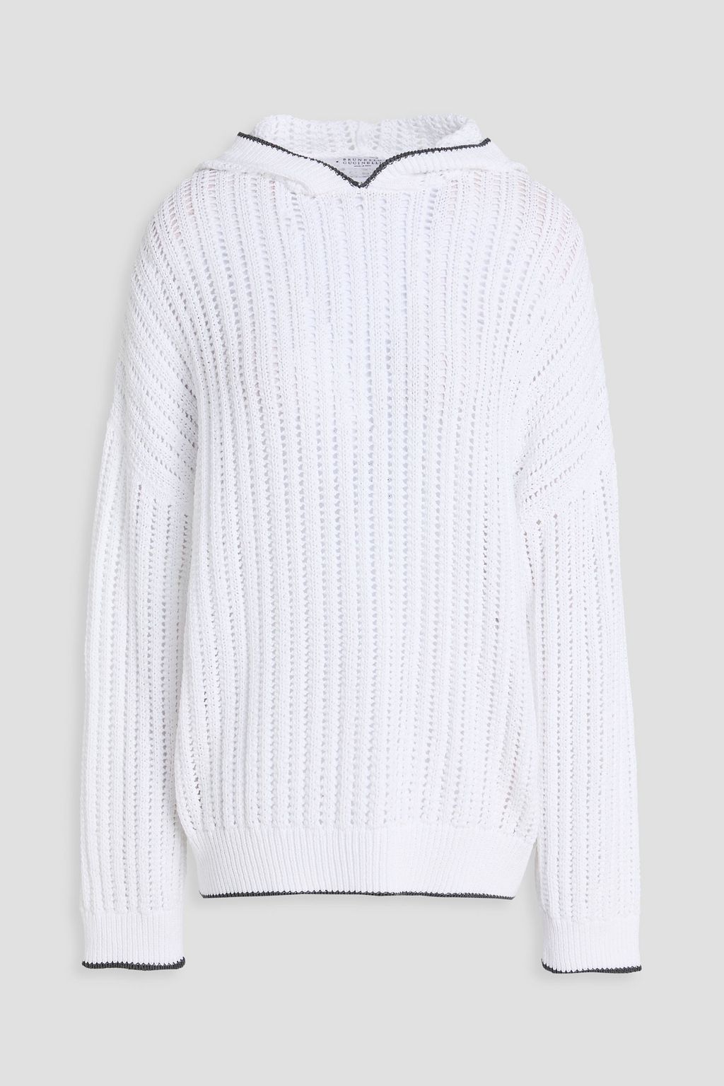 Feeling festive? This Brunello Cucinelli open-knit hoodie finds the sweet spot between casual and polished. Made from airy cotton, it has contrasting trims that offer gentle definition. Slip it on for your off-duty days; add slim trousers and and sneakers to complete the look.