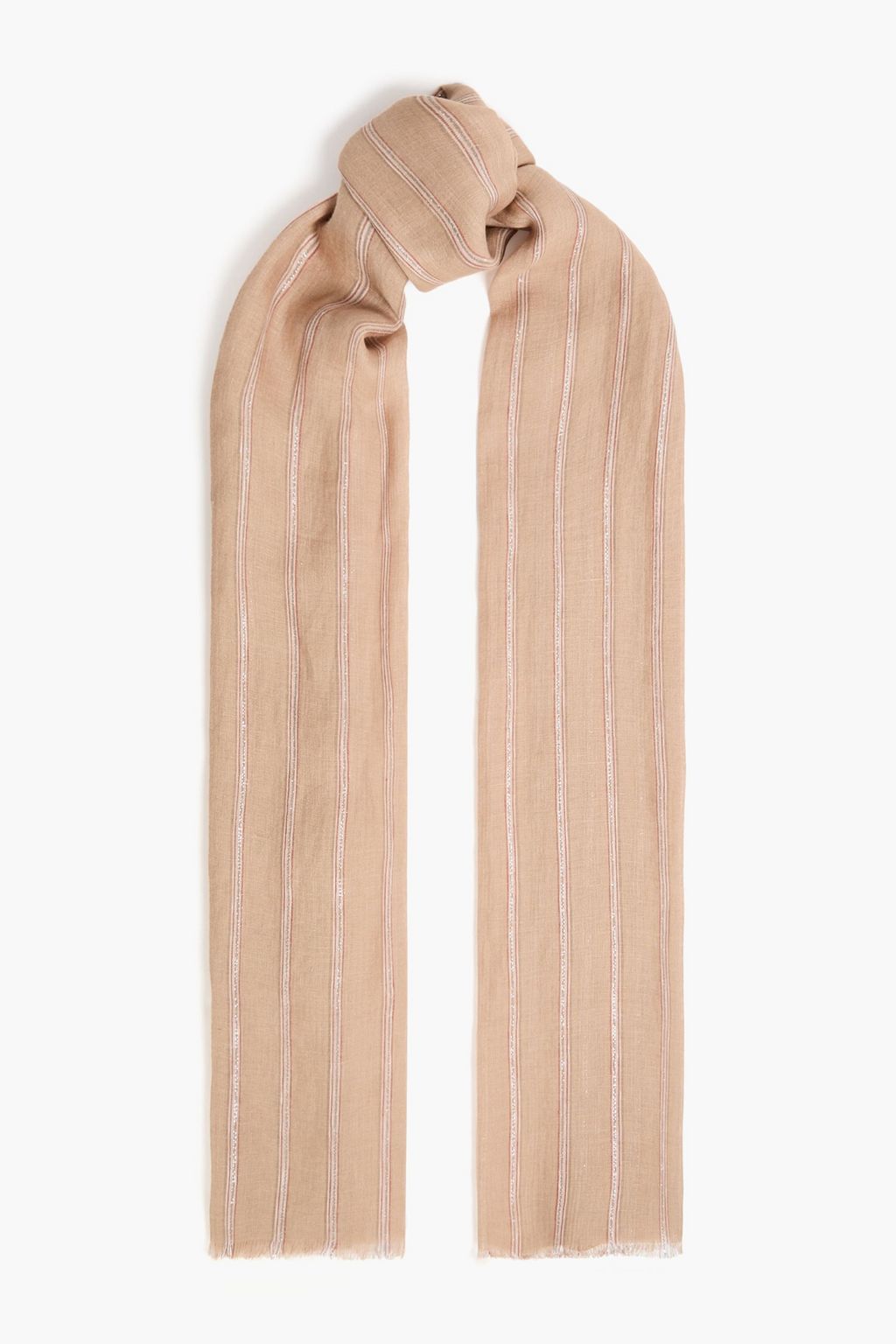 BRUNELLO CUCINELLI Metallic striped linen-blend gauze scarf