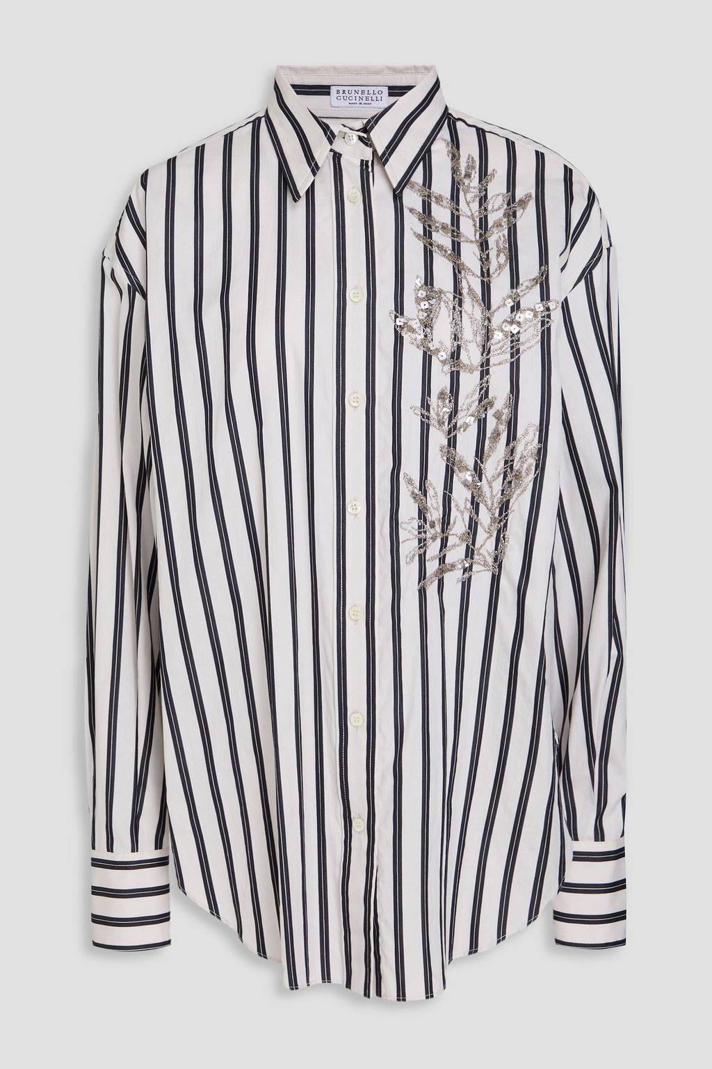 BRUNELLO CUCINELLI Embellished striped cotton and silk-blend shirt