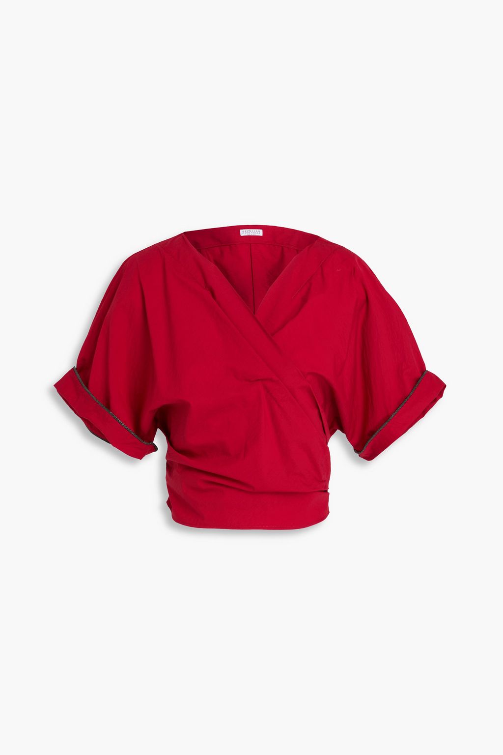 BRUNELLO CUCINELLI Cropped bead-embellished cotton-blend wrap top