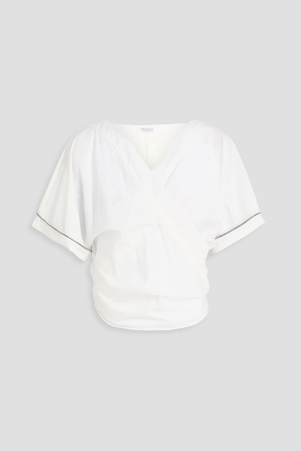 BRUNELLO CUCINELLI Cropped bead-embellished cotton-blend wrap top