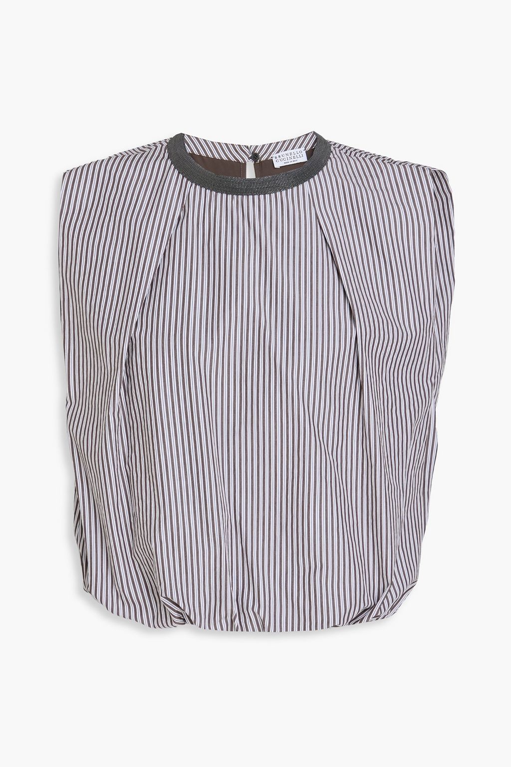 BRUNELLO CUCINELLI Bead-embellished striped cotton-poplin top