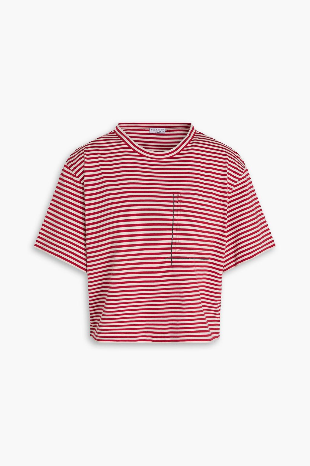 BRUNELLO CUCINELLI Bead-embellished striped cotton-jersey T-shirt